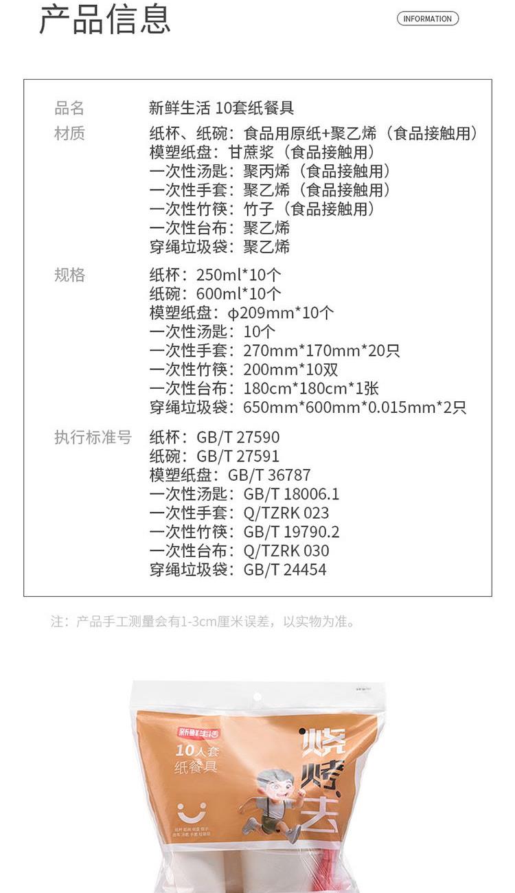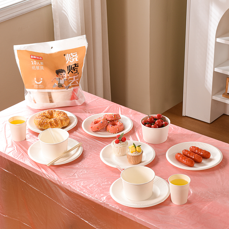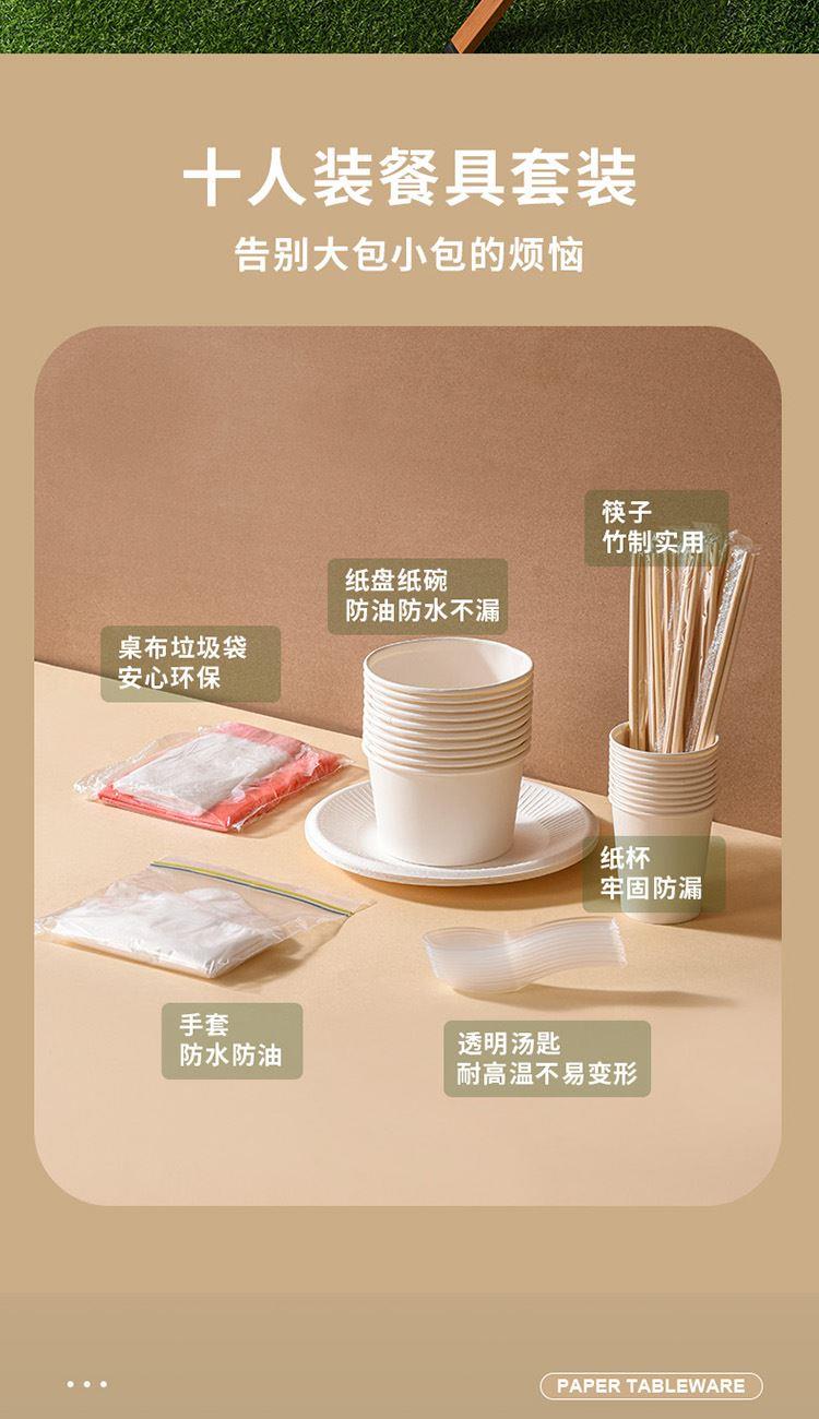 規(guī)格:250ml紙杯、600ml紙碗、湯匙、209mm模塑紙盤、(各10個(gè))