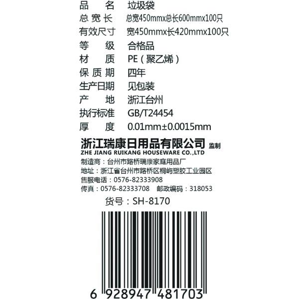 規(guī)格:450mm*600mm*20只*5卷 材質(zhì):PE(聚乙烯)